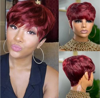 Burgundy Short Bob Pixie Cut Wig with Bangs